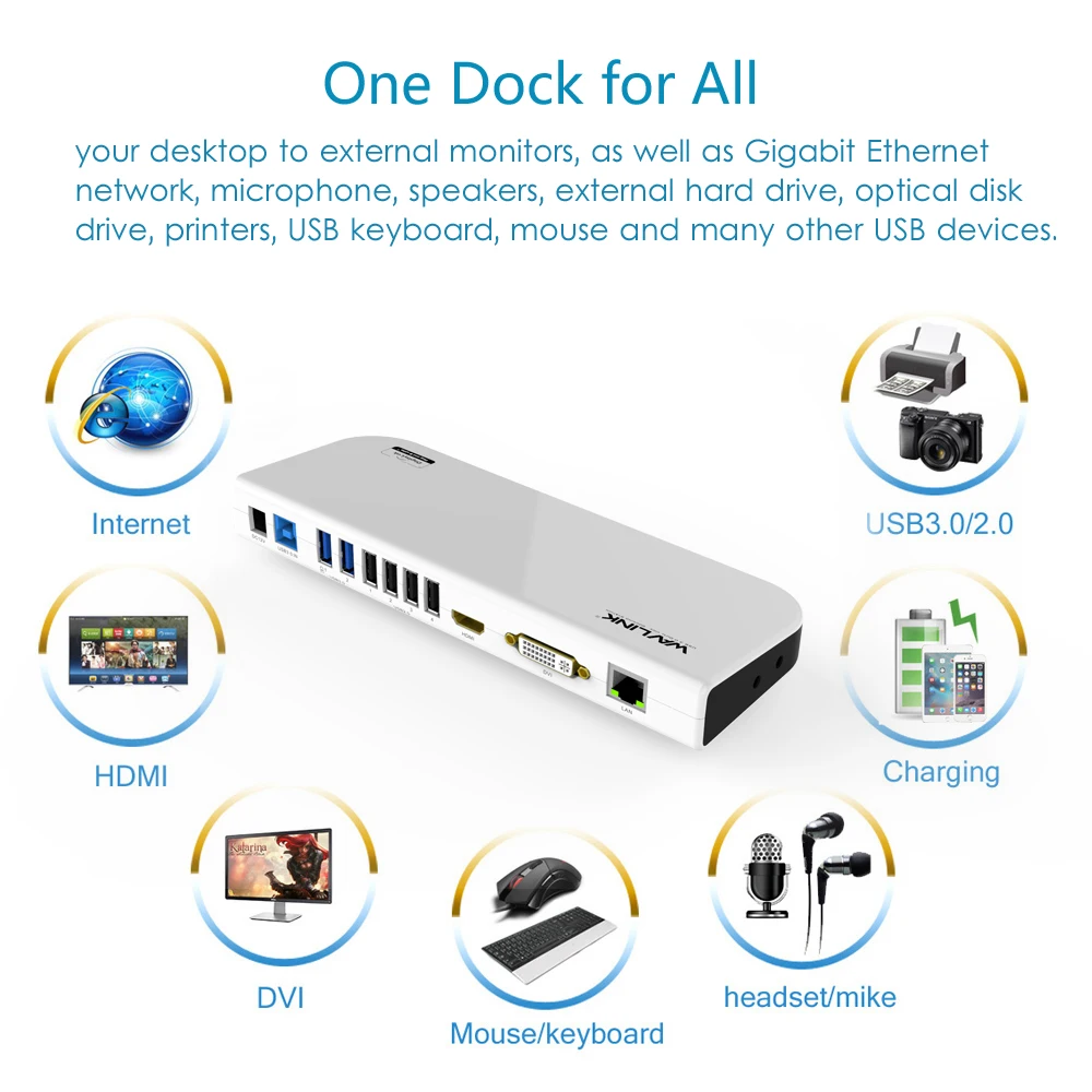 Wavlink 7 USB 3.0/2.0 Ports Universal Docking Station Dual Head Up to 1080P 2k HD Laptop Docking Station for Mac OS Windows US/ : Click Here