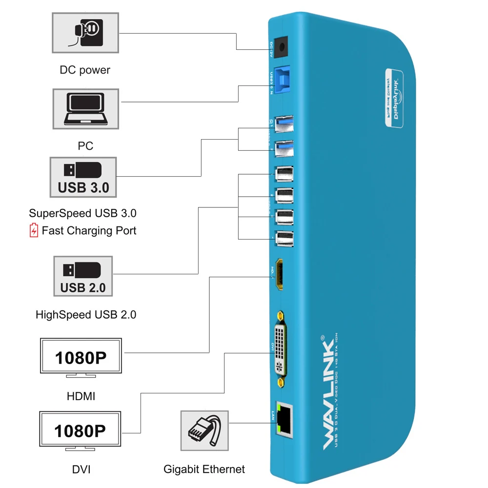 - Product name : Wavlink Universal USB 3.0 Docking Station Dual Video display Monitor RJ45 Gigabit Ethernet Support